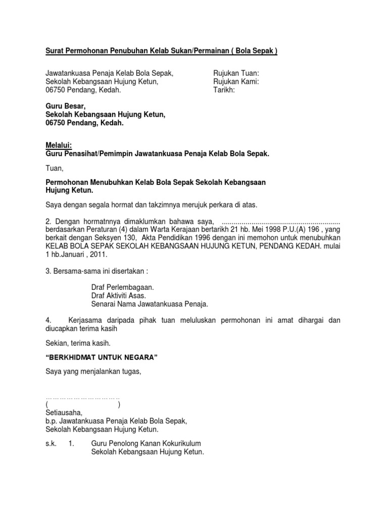 The collection that comprising chosen. Format Contoh Surat Mohon Sumbangan Kelab Guru yang Benar 2019. Contoh surat permohonan pendaftaran kelab.